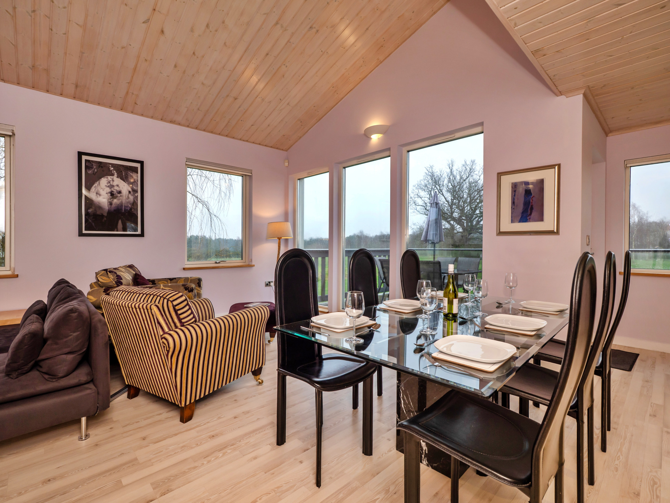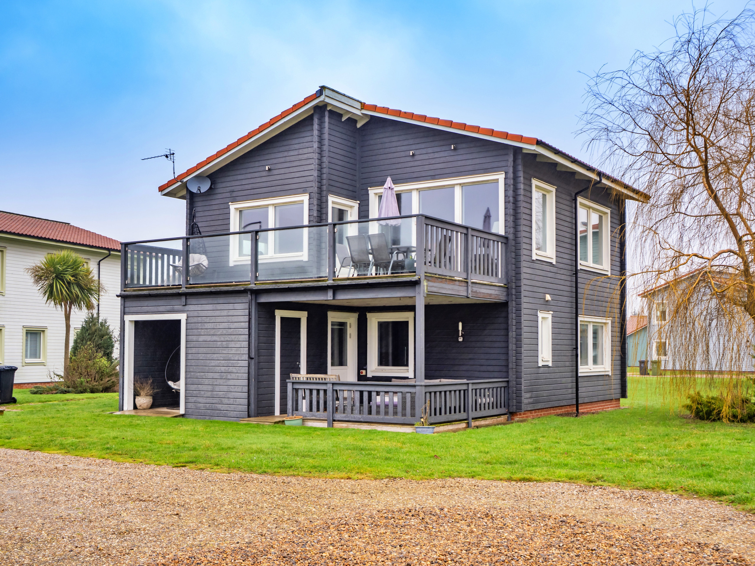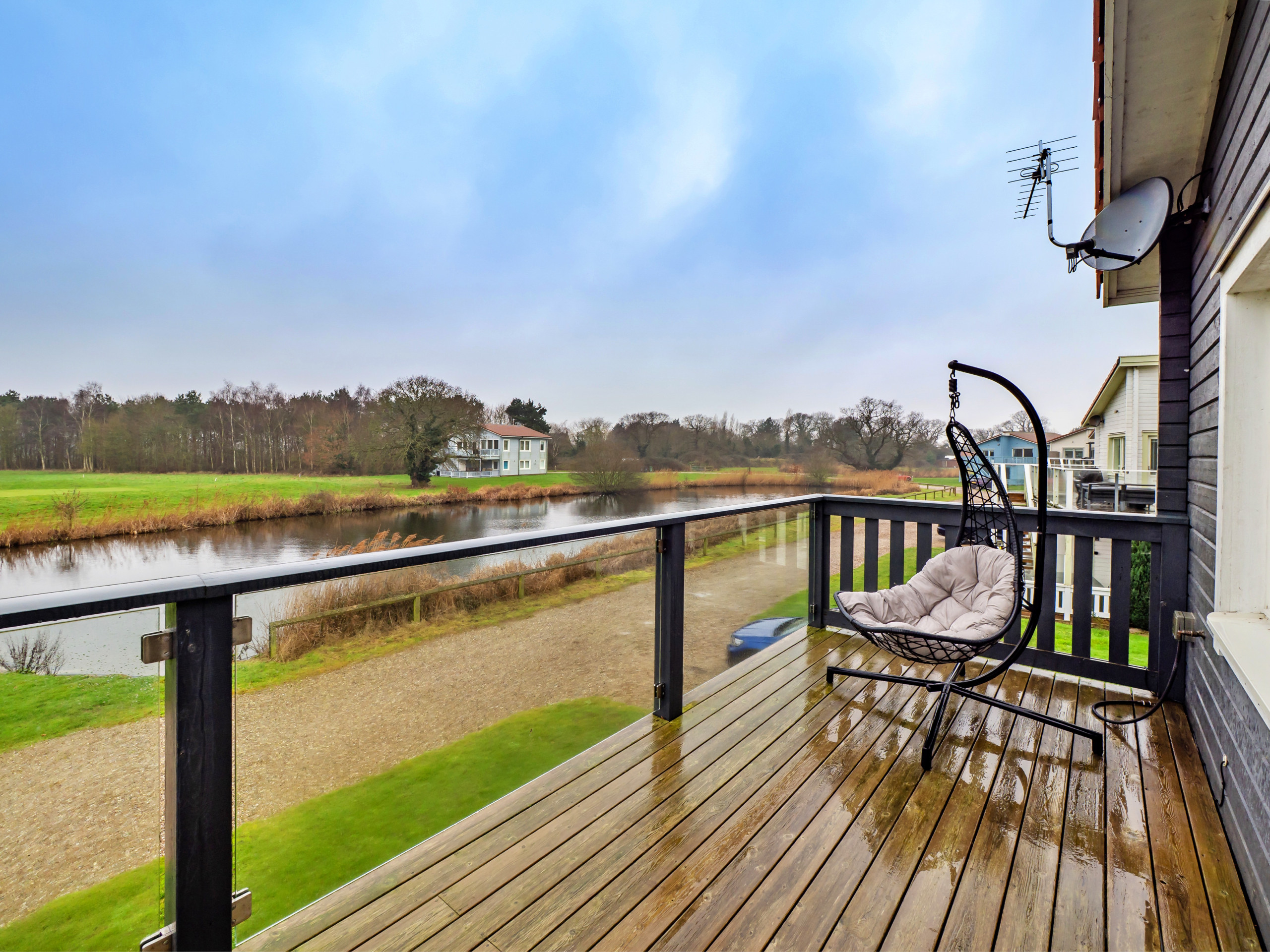 Outdoor space is plentiful, with a first-floor balcony for al fresco dining and a relaxing egg chair, as well as a covered veranda on the ground floor. Golfers can enjoy both 18-hole and 9-hole courses, with visitor passes and buggy hire available at an additional cost. The Norfolk Broads are close by, with boat hire available at Saint Olaves (2 miles), while Somerleyton Hall and Gardens is 5 miles away. For seaside outings, Gorleston-on-Sea is 5 miles away and Great Yarmouth is just 7 miles from the lodge.