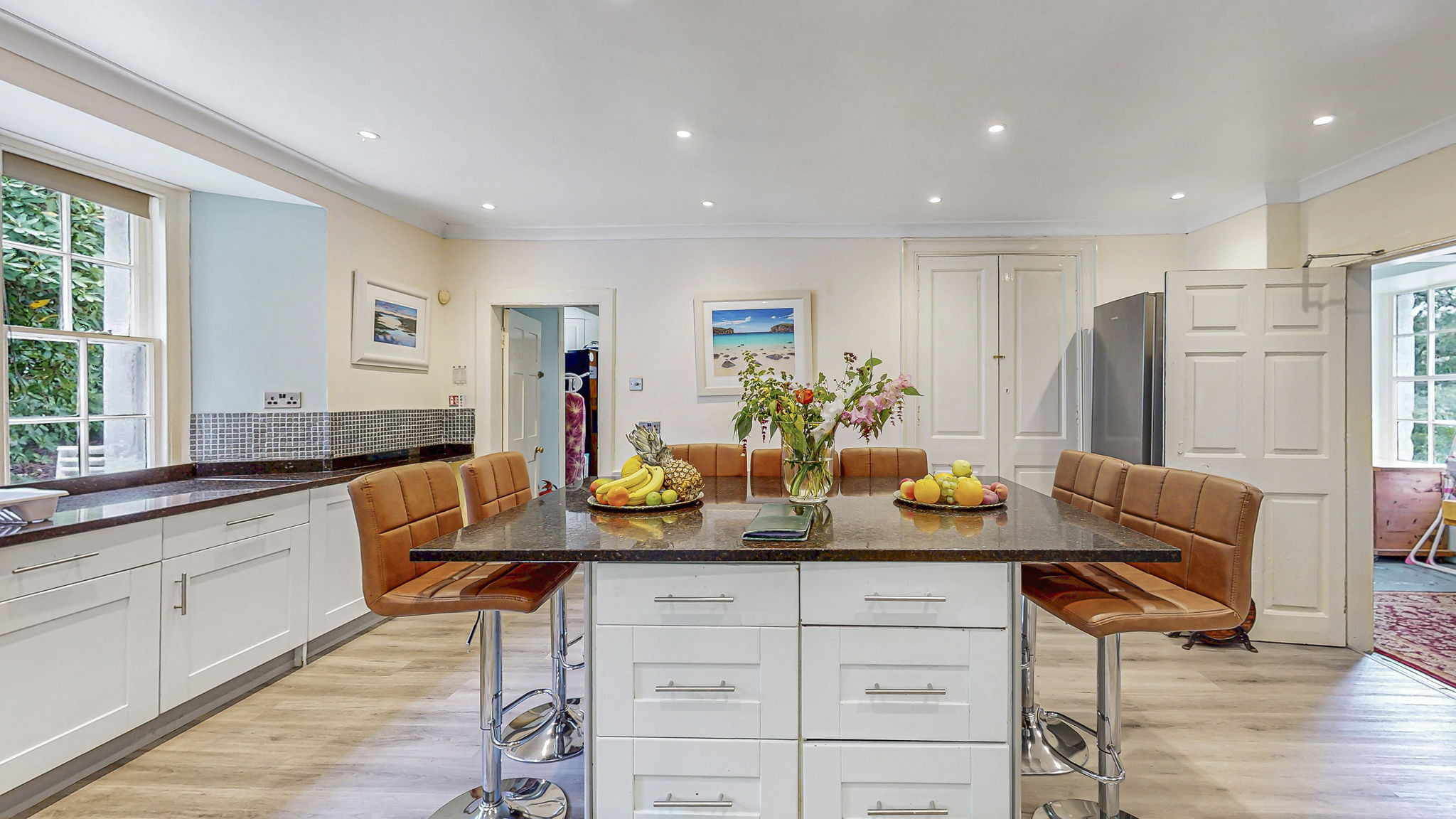 Upstairs, the generous sized bedrooms have been arranged to offer maximum flexibility. Three rooms are king-size doubles; one is a quadruple bunk room; another is set with three single beds; and there is a family bunk room that sleeps up to six. The remaining seven bedrooms can all be configured either as super-king doubles or as twins, and in some cases even as triples. All but the two bunk bedrooms have either an ensuite bathroom or a wash-hand basin, and the house includes four additional bathrooms and two separate WCs.