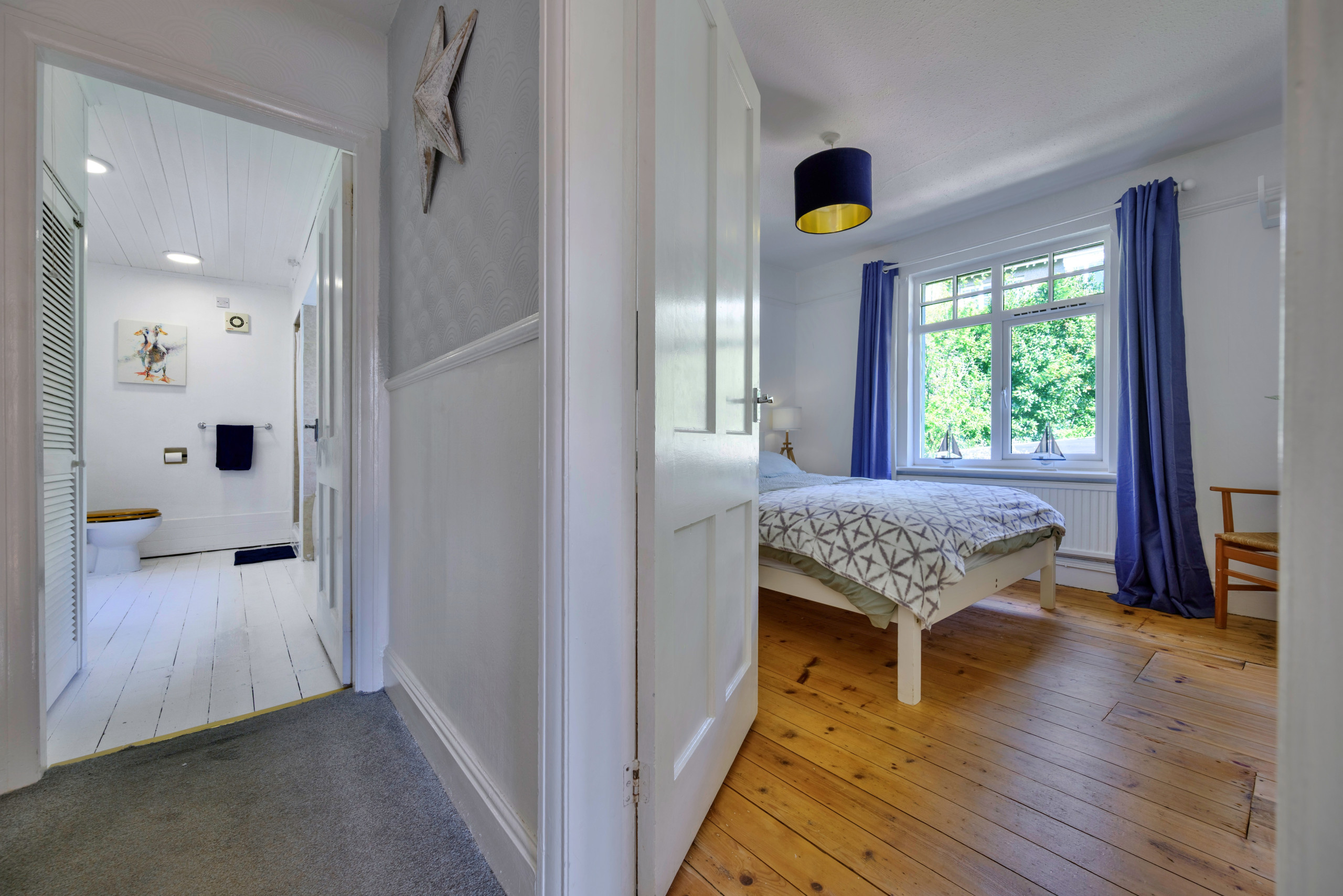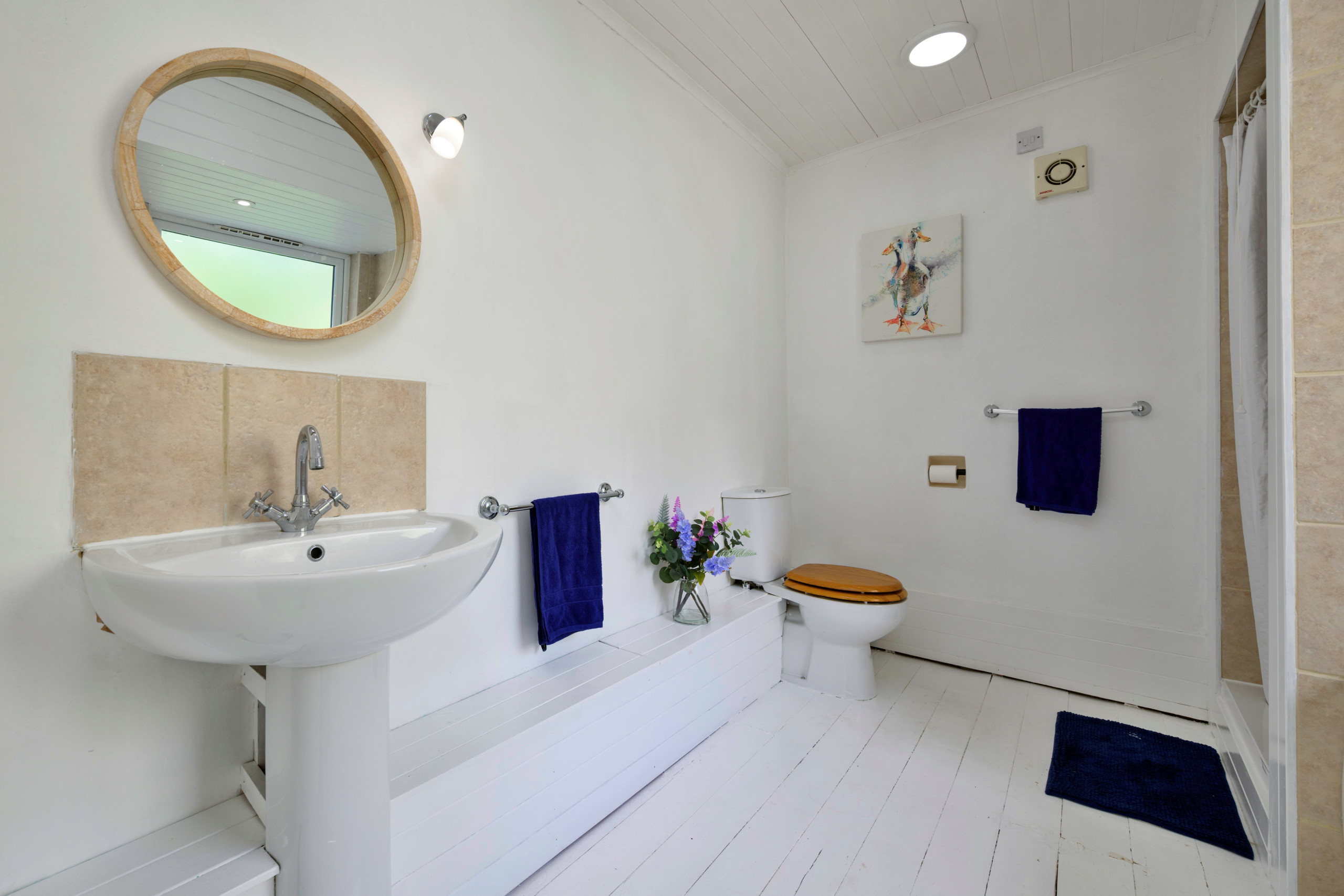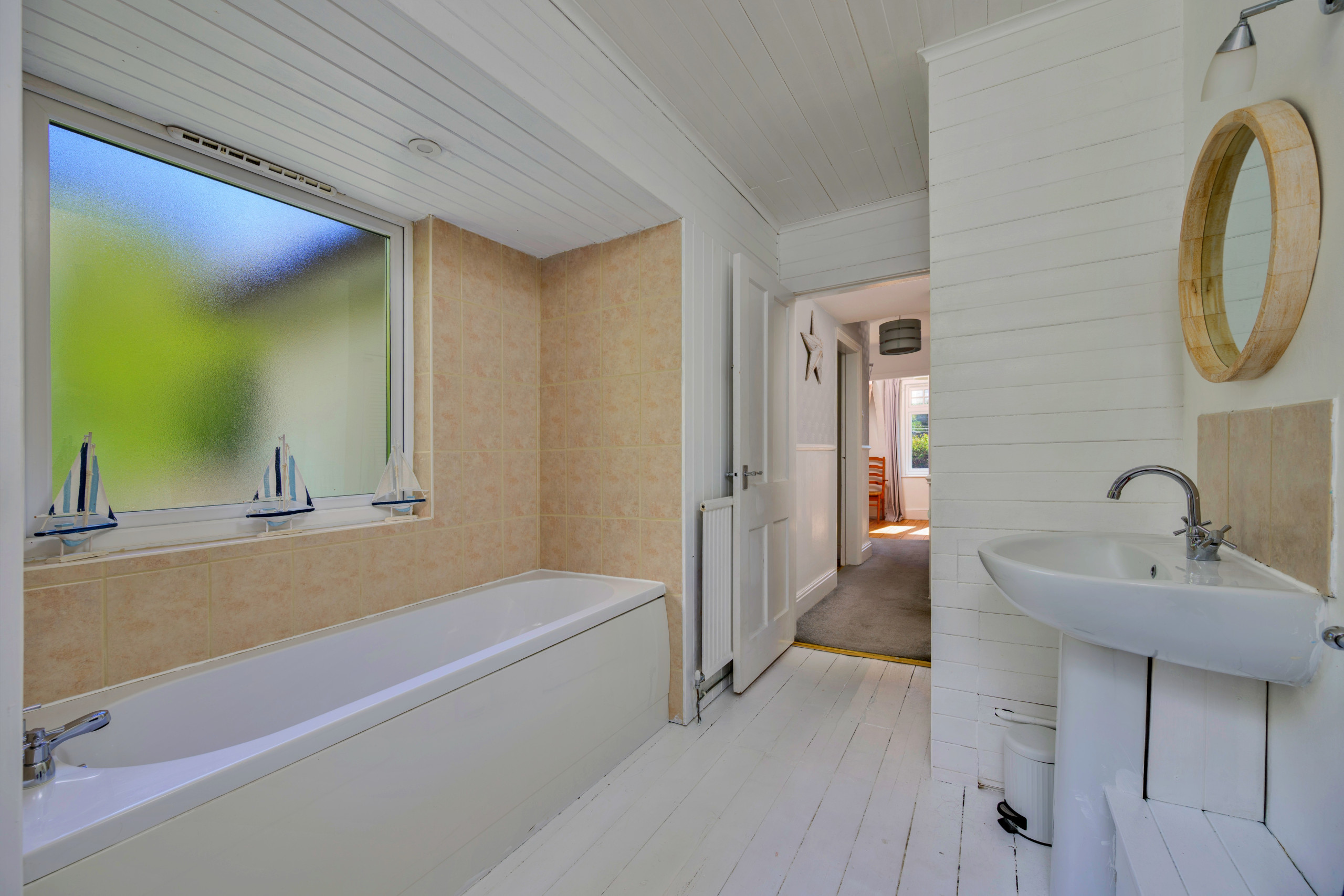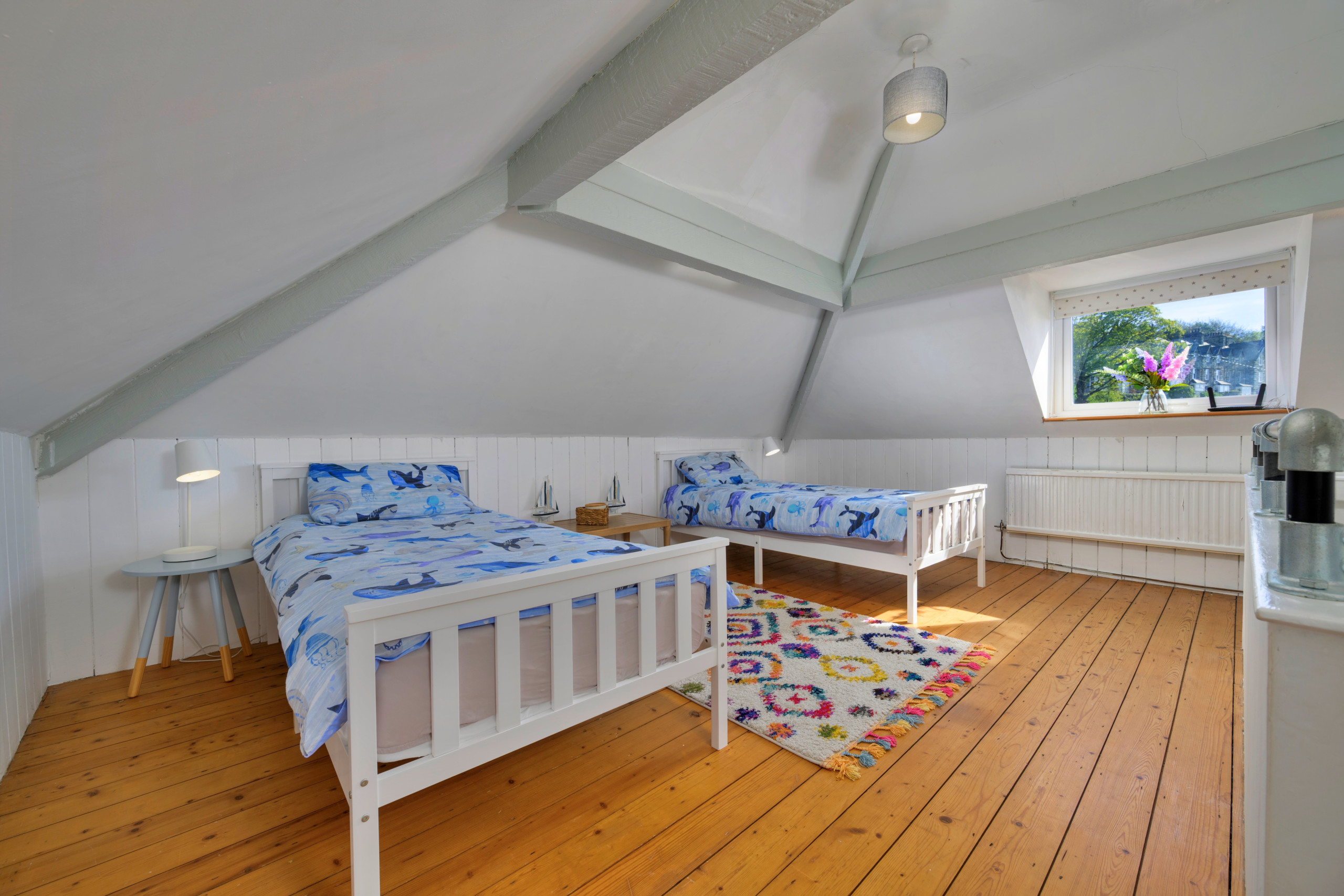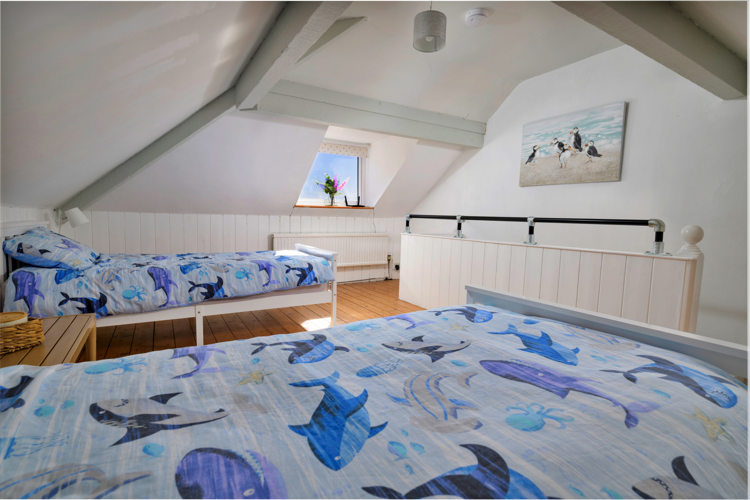 Upstairs, you’ll find a spacious family bathroom featuring both a bath and separate shower, along with two generously sized bedrooms, each with king-size beds. A further staircase leads to a charming attic room with twin beds, perfect for children.