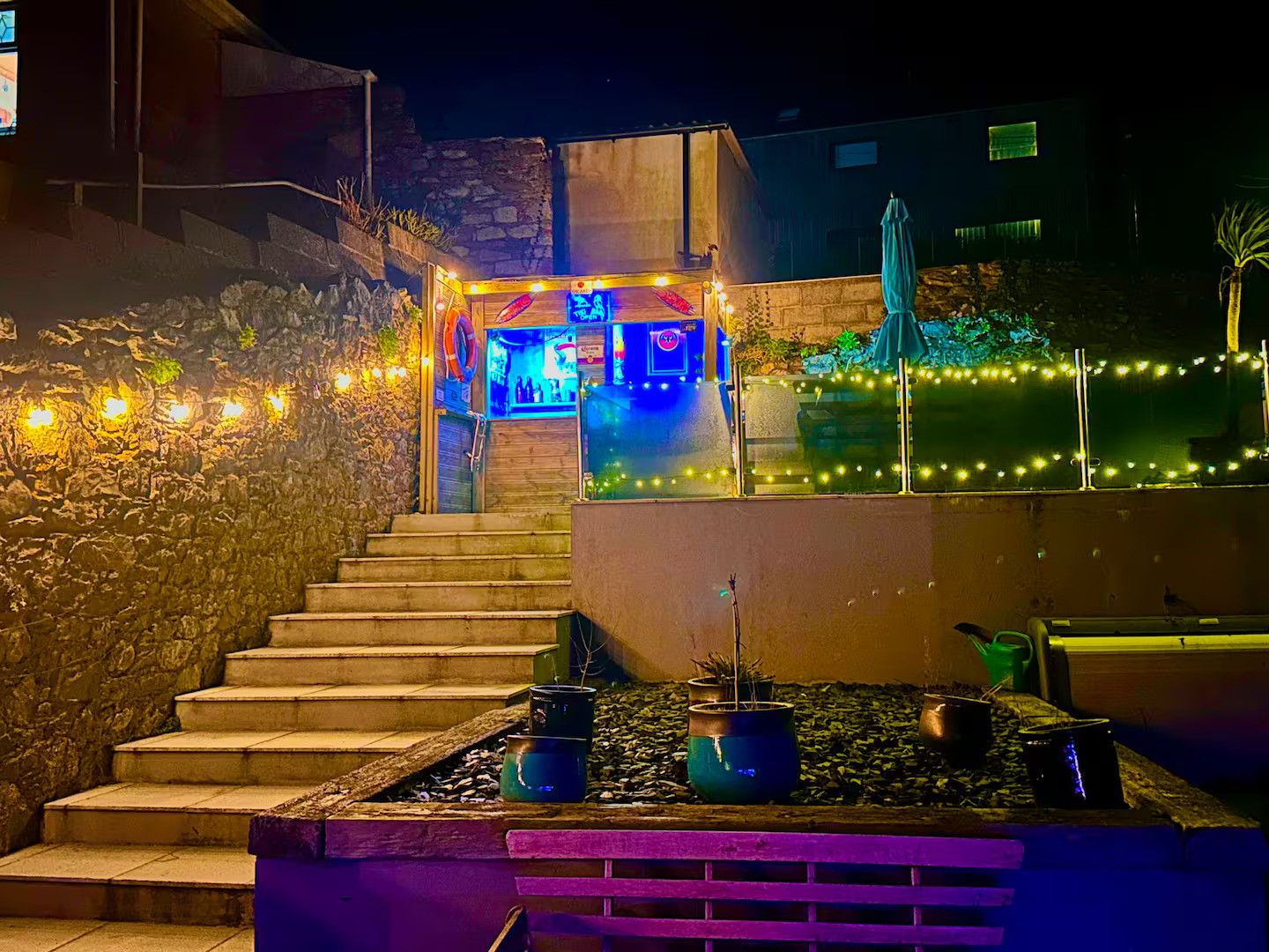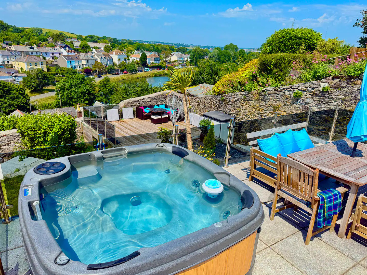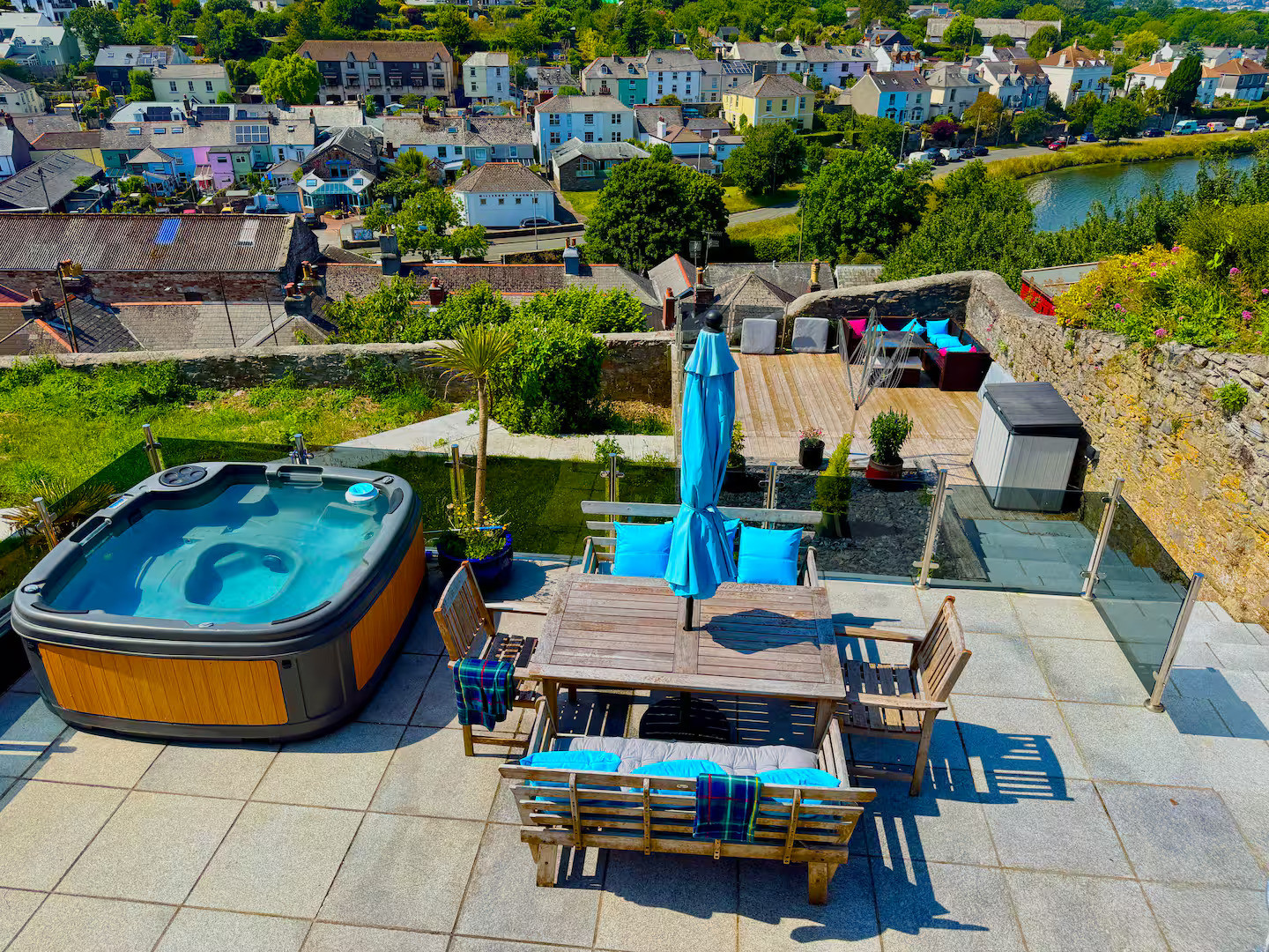 With fantastic outdoor space, the large garden makes the most of the sun from morning to evening. It’s a fun, easy-going setting for everyone to enjoy, with a hot tub, tiki bar, and plenty of room to sit, eat, and relax.