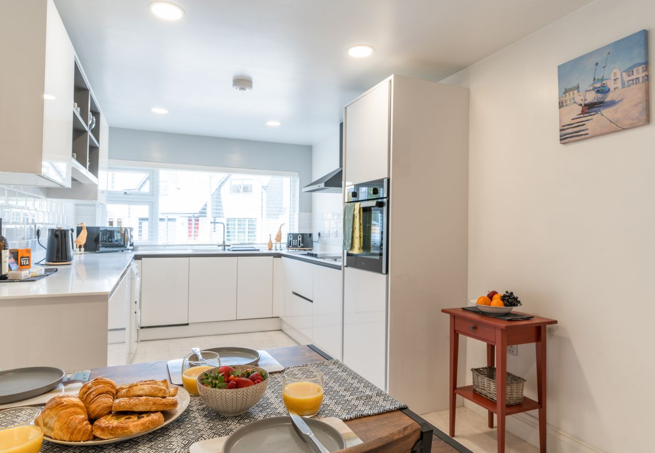 Entering through the front porch, there is plenty of room for coats, shoes, buckets and spades and beach gear. The kitchen is bright, modern and chic, with a dining table to seat four and integrated appliances including fridge, freezer, dishwasher and oven. There is a ceramic electric hob and plenty of worktop space, along with all the kitchenware you'll need for your slow-paced holiday breakfast!