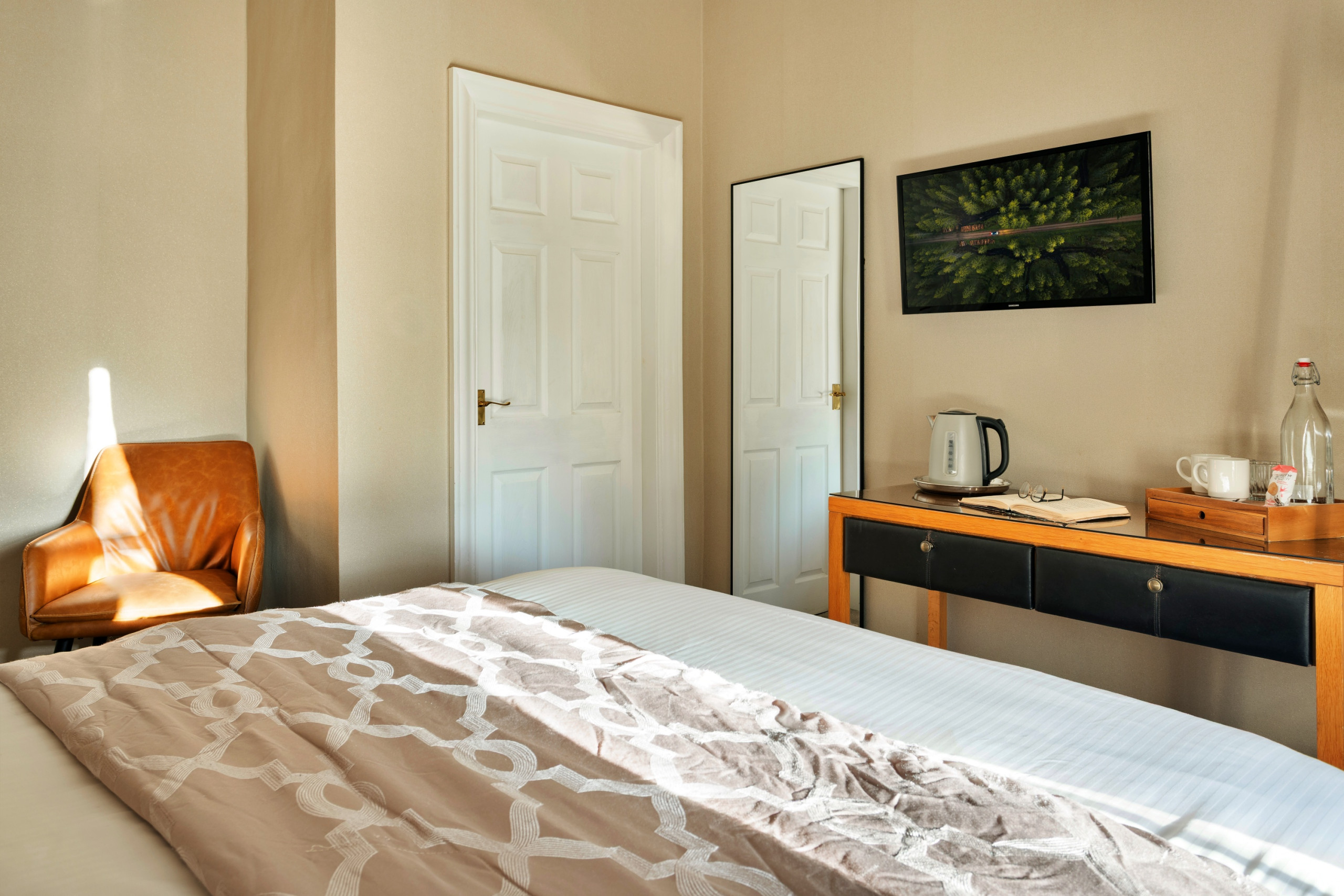 Kilnhow is an elegant first-floor room which offers a luxurious retreat with the flexibility of a super king bed or twin beds, allowing you to choose the perfect arrangement for your stay. From the moment you arrive, the room’s warm and welcoming atmosphere invites you to relax, complemented by a complimentary bottle of mineral water awaiting you. Thoughtfully appointed and beautifully finished, this suite provides a peaceful haven ideal for unwinding after exploring the stunning Lake District surroundings.