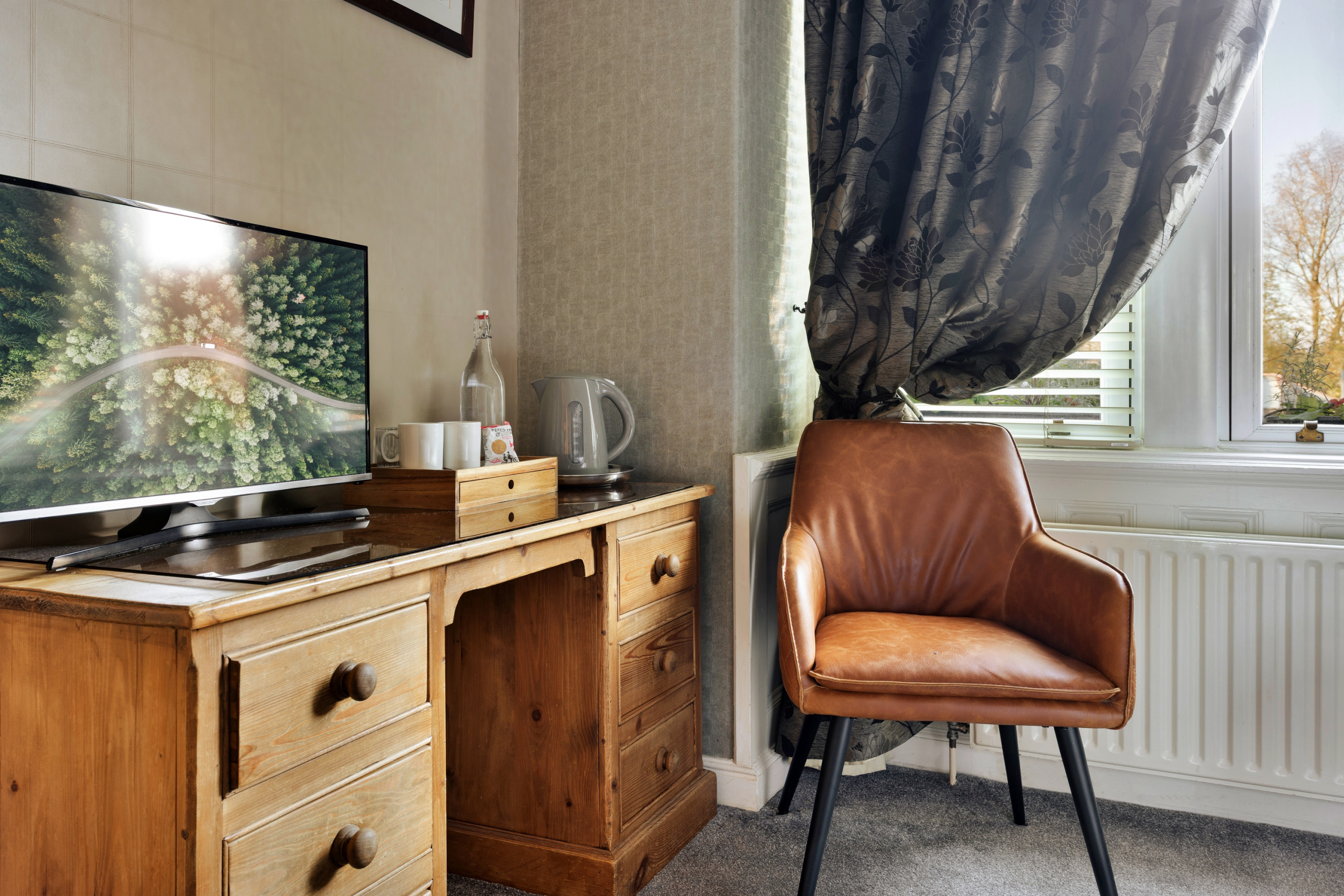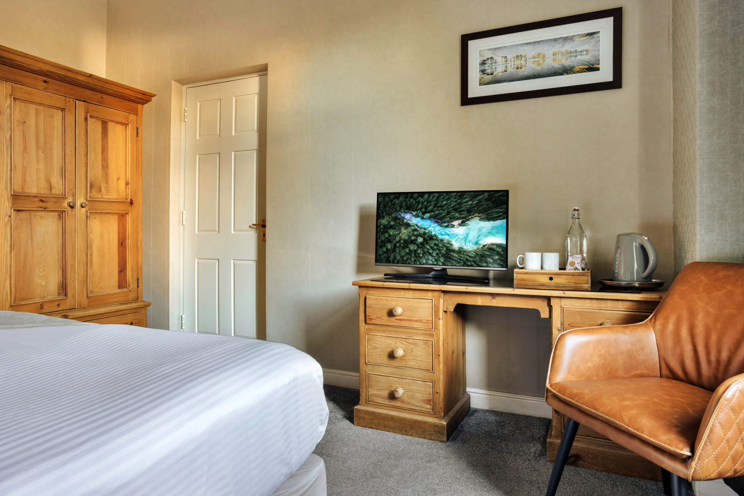 Lingmell is a beautifully presented ground-floor room offering both comfort and convenience, with easy access to the front door and the flexibility of a luxurious super king bed or twin beds to suit your stay. A complimentary bottle of mineral water awaits your arrival, adding a thoughtful touch as you settle into this calm and welcoming space. Designed as a restful retreat after days spent exploring the Lake District, Lingmell combines elegance, practicality and a warm, inviting atmosphere.