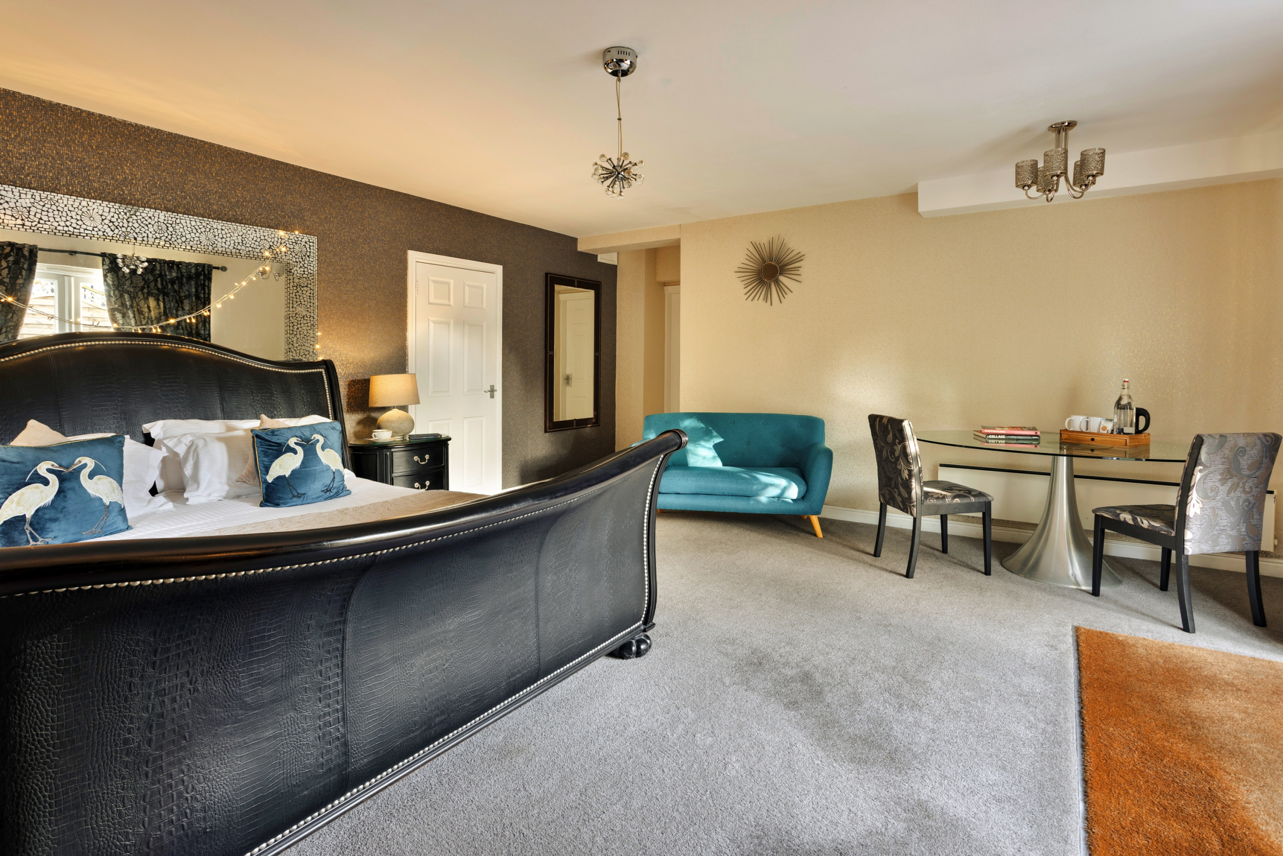 The Retreat Suite offers an exceptional luxury experience with a super king leather sleigh bed, a double air bath, and a double walk-in wet room shower, creating a warm and inviting atmosphere. This suite is unique, not only for its elegant design but also for its private patio with table and chairs—perfect for enjoying the long summer evenings for which the Lake District is renowned. Breakfast can be served in the suite at a time to suit you, adding a personal touch to your stay.